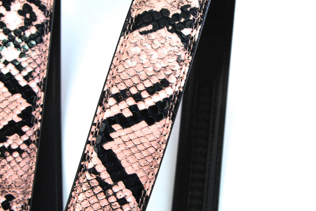 This Pink Boa print strap is made with an animal friendly PU faux leather material that features a boa scale pattern with great texture. As with all of our Anson Belt straps, this strap uses Micradjust Technology® for the perfect fit, every time.