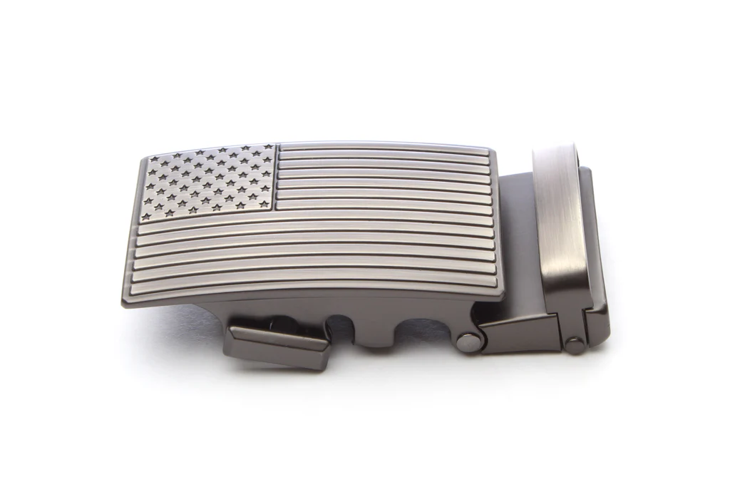 The 1.5" USA Flag in Gunmetal buckle is the perfect way to display your patriotism with class. The embossed flag features incredible subtle detail. As with all of our buckles, it uses Micradjust Technology® for the perfect fit.