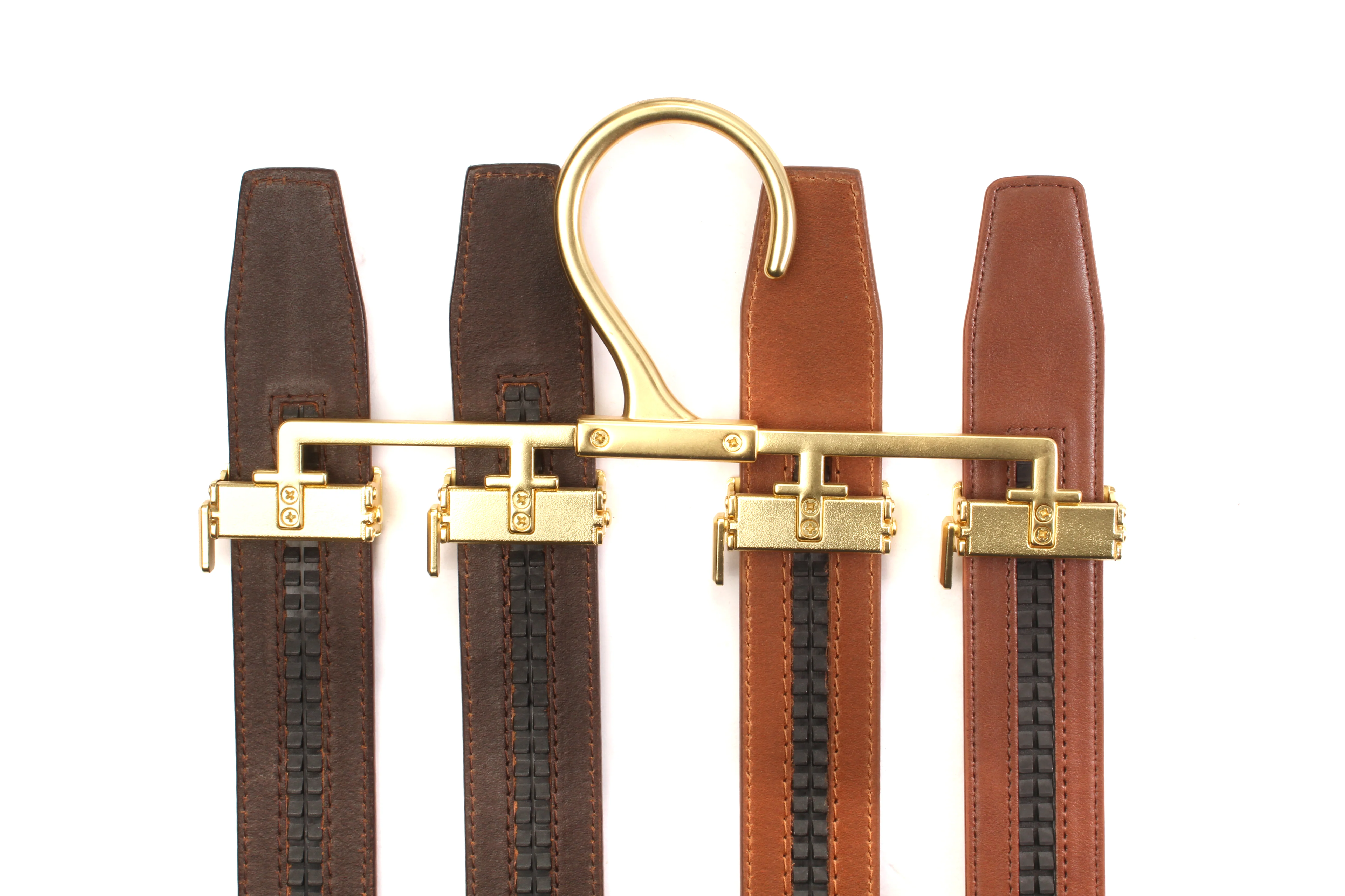Designed with the same premium quality metal as our signature buckles, the 4 Strap Hanger is not only functional but also a stylish addition to any wardrobe. Its compact design allows you to hang up to four straps neatly in your closet or on a hook, keeping your belts easily accessible and beautifully displayed.